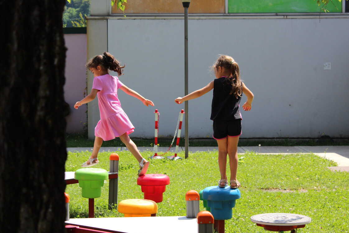 Spazi esterni attrezzati e attività all'aria aperta per favorire il contatto con la natura e la scoperta dell'ambiente.
